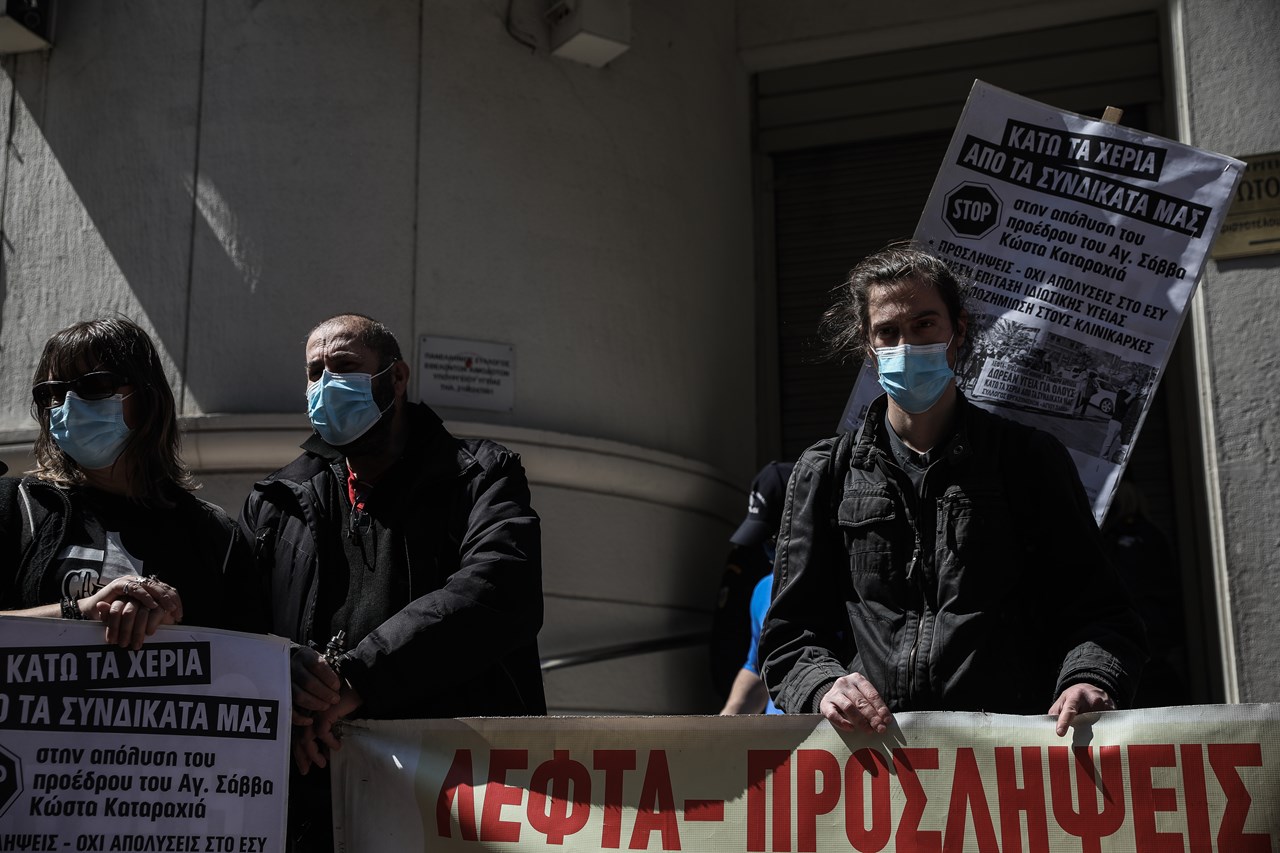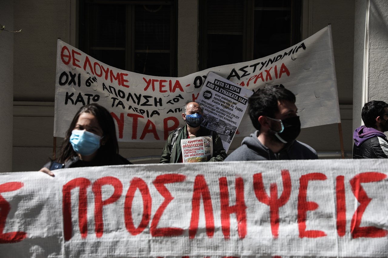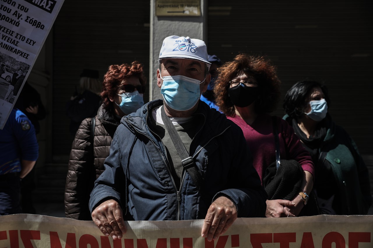 Συγκέντρωση διαμαρτυρίας πραγματοποιούν από το πρωί εργαζόμενοι υγειονομικοί στο Υπουργείο Υγείας.