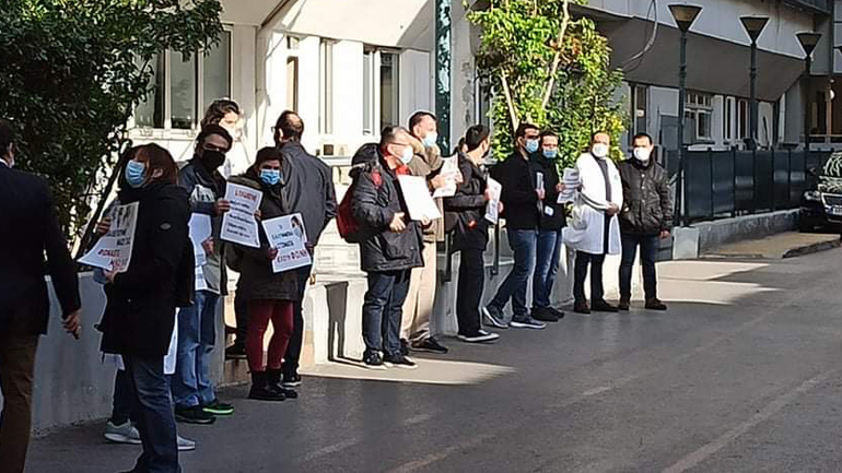 Διαμαρτυρία υγειονομικών στον «Ευαγγελισμό» την ώρα που πραγματοποιούνταν οι πρώτοι εμβολιασμοί