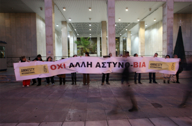 «Εδώ στην Ελλάδα, πέρα από την περιστολή, ατομικών, κοινωνικών και οικονομικών δικαιωμάτων που βιώνουμε, οι κατάφωρες παραβιάσεις ανθρωπίνων δικαιωμάτων από μέλη των σωμάτων ασφαλείας παραμένουν μόνιμο και οδυνηρό φαινόμενο. Ανάμεσα στ΄ άλλα περιλαμβάνουν βασανιστήρια και άλλες μορφές κακομεταχείρισης κατά τη διάρκεια της σύλληψης ή της κράτησης, κακή χρήση πυροβόλων όπλων, υπερβολική χρήση βίας, εξύβριση, προπηλακισμούς και άλλες παραβιάσεις κατά την αστυνόμευση διαδηλώσεων, αλλά και κακοποιήσεις και επαναπροωθήσεις προσφύγων και μεταναστών», τονίζεται σε σχετική ανακοίνωση.