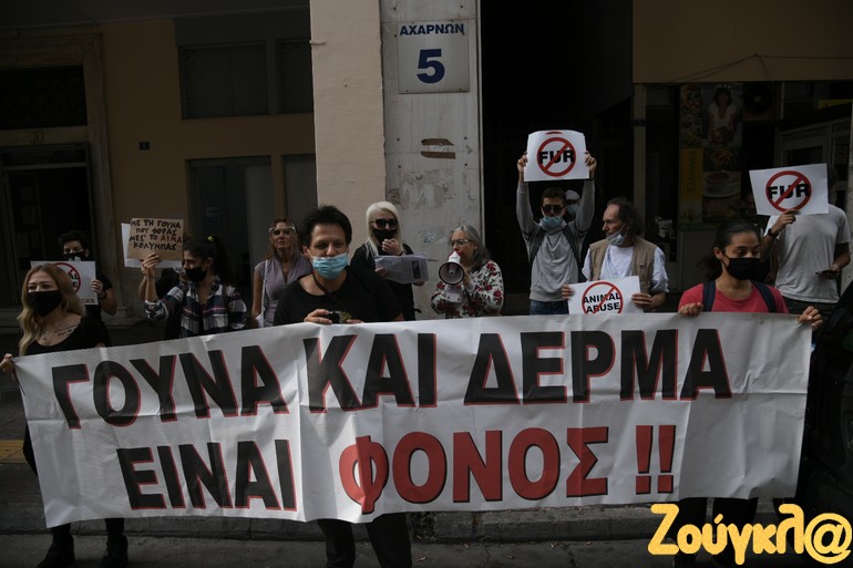 Διαμαρτυρία κατά της βιομηχανίας της γούνας και της κακοποίησης των ζώων πραγματοποιήθηκε σήμερα, Παρασκευή, μπροστά από το Υπουργείο Αγροτικής Ανάπτυξης.