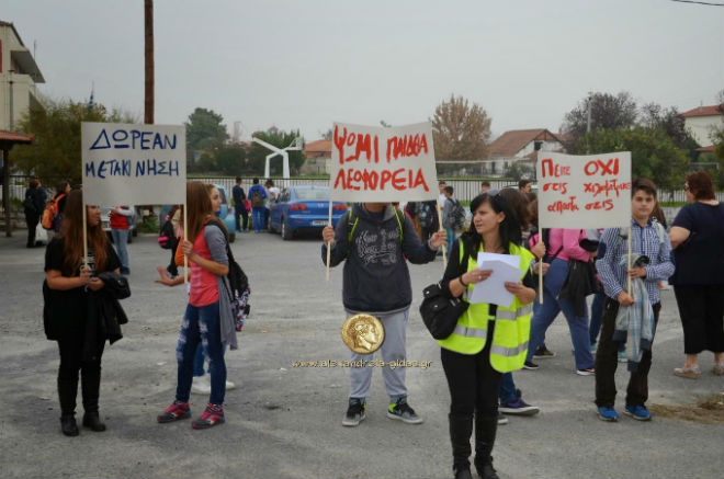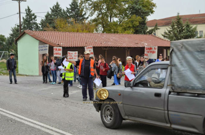 Οι γονείς μοίρασαν ενημερωτικά φυλλάδια στους οδηγούς των διερχομένων αυτοκινήτων, ενώ μαθητές που είχαν τελειώσει τα μαθήματά τους και συμμετείχαν στις κινητοποιήσεις κρατούσαν πανό διαμαρτυρίας.
