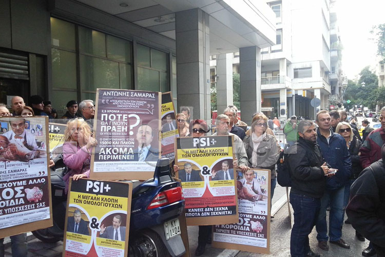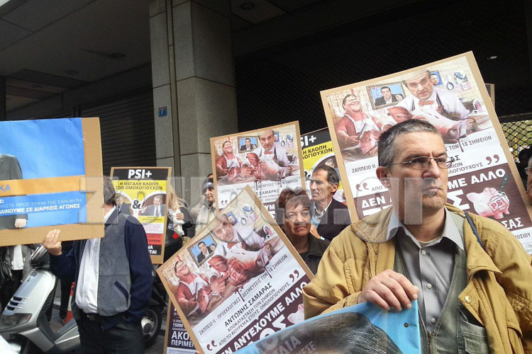 Περίπου 100 μικροομολογιούχοι βρέθηκαν έξω από το υπουργείο Οικονομικών φωνάζοντας συνθήματα και ζητώντας την επιστροφή των χρημάτων που έχασαν με την υποχρεωτική συμμετοχή τους στο PSI.