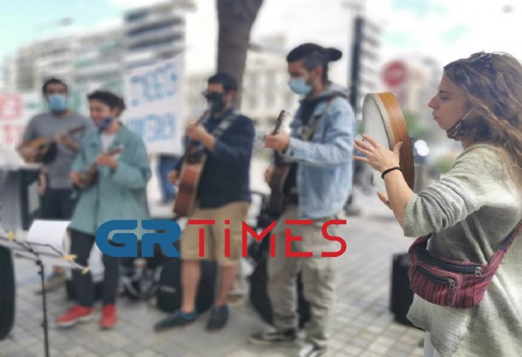 Μουσική διαμαρτυρία στον πεζόδρομο της Αγίας Σοφίας στη Θεσσαλονίκη πραγματοποιούν αυτή την ώρα καλλιτέχνες της πόλης οι οποίοι τον τελευταίο χρόνο, λόγω των μέτρων που έχουν ληφθεί κατά της πανδημίας, έχουν περιέλθει σε δύσκολη οικονομική κατάσταση.