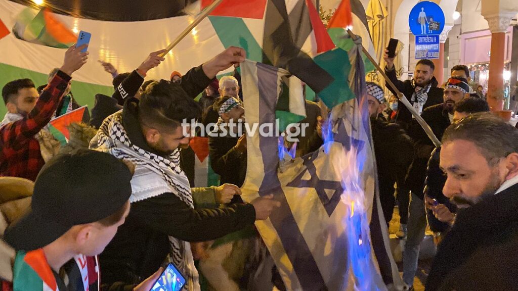 Οι συγκεντρωμένοι έκαψαν και μια σημαία του Ισραήλ φωνάζοντας “Αλλαχού ακμπάρ” (σ.σ. ο Αλλάχ είναι μεγάλος). Επιπλέον, όπως αναφέρουν, στηρίζουν “τον αγώνα για ανεξάρτητο και βιώσιμο παλαιστινιακό κράτους στα σύνορα της 4 Ιουνίου 1967, με πρωτεύουσα την Ανατολική Ιερουσαλήμ”.