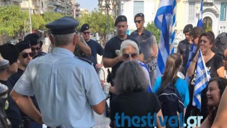 Συγκέντρωση διαμαρτυρίας μπροστά στο Ιερό Ναό Αγίου Δημητρίου πραγματοποιούν πολίτες που αντιτίθενται στη συμφωνία των Πρεσπών μεταξύ Ελλάδας και Σκοπίων.