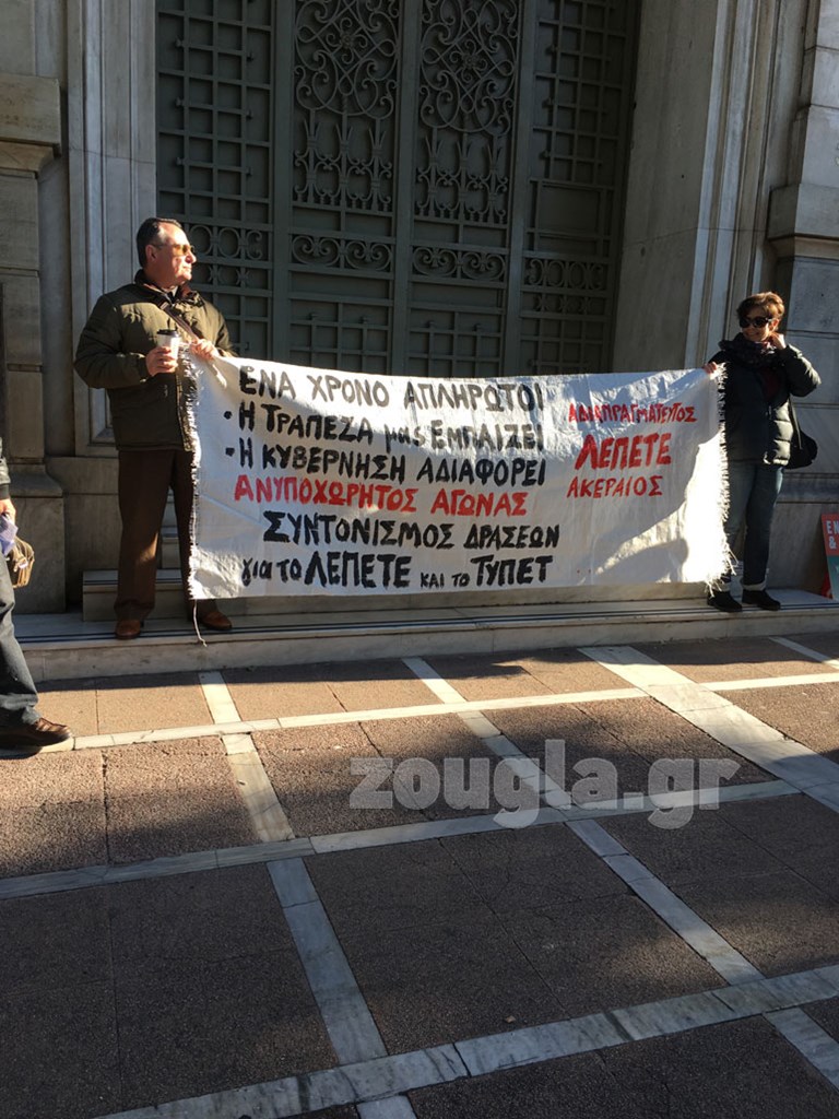 Σε εξέλιξη είναι αυτήν την ώρα διαμαρτυρία συνταξιούχων της Εθνικής Τράπεζας έξω τα γραφεία της Τράπεζας επί της Σταδίου 38.
