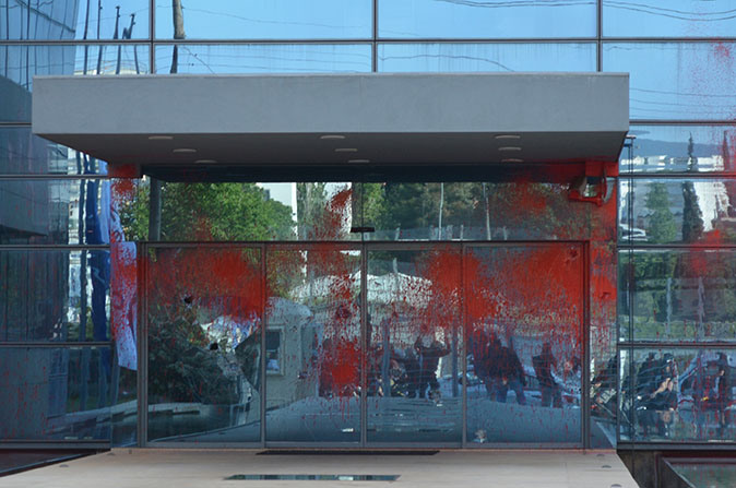 Η διαμαρτυρία σημειώθηκε μετά το θανατηφόρο ατύχημα στα διυλιστήρια του Ασπροπύργου. Η ομάδα πέταξε μπογιές και αποχώρησε.΄