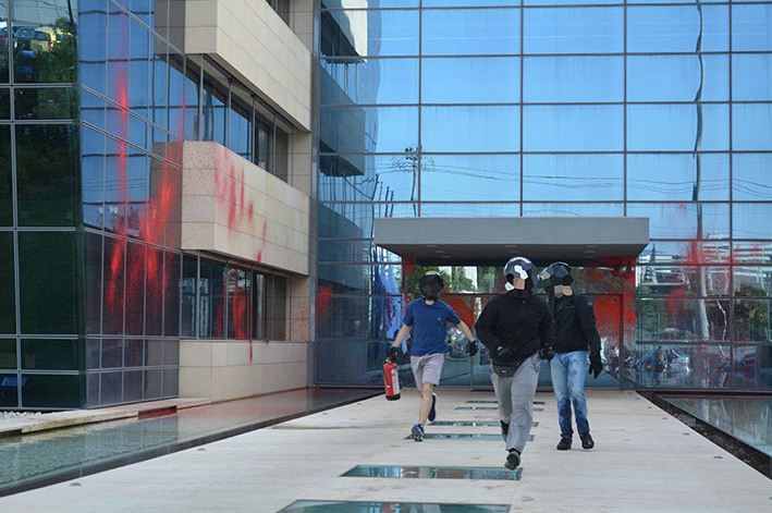 Παρέμβαση στα κεντρικά γραφεία των ΕΛΠΕ στο Μαρούσι έκανε το απόγευμα της Πέμπτης η «ΚΟΚΚΙΝΗ ΓΡΑΜΜΗ – ομάδα για την εργατική αντεπίθεση, αναρχική ομάδα ΡΟΥΒΙΚΩΝΑΣ».