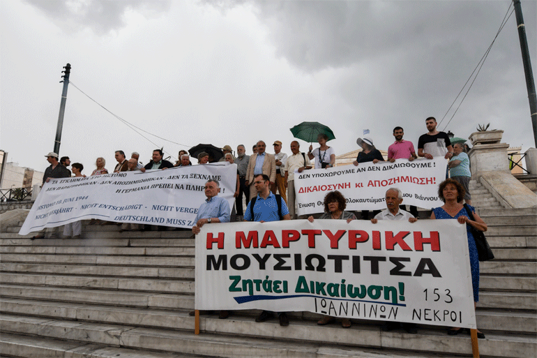 Διαμαρτυρία πραγματοποίησαν στο Σύνταγμα το Εθνικό Συμβούλιο Διεκδίκησης των Οφειλών της Γερμανίας προς την Ελλάδα και η κίνηση AK «DISTOMO» για τις πολεμικές επανορθώσεις και αποζημιώσεις.