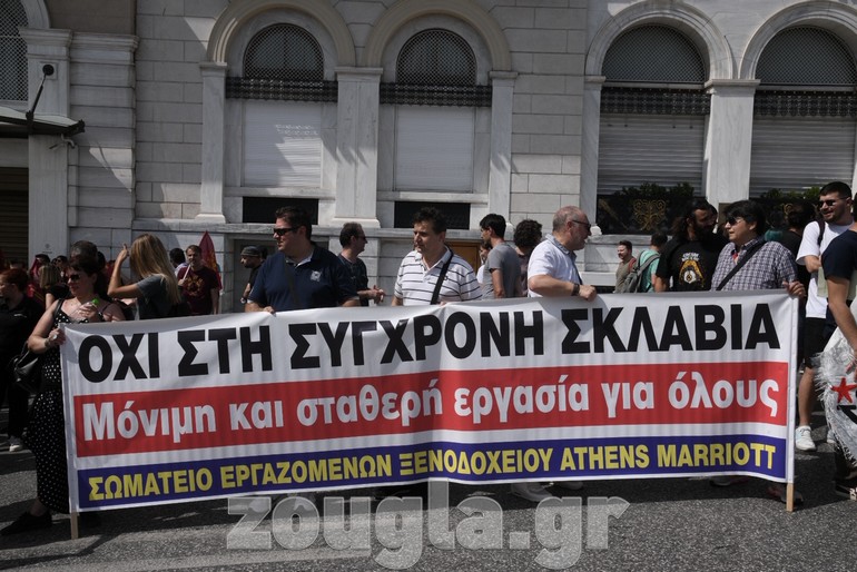 Οι διαδηλωτές συγκεντρώθηκαν στο ξενοδοχείο Μεγάλη Βρετάνια και κατευθύνθηκαν προς το υπουργείο Εργασίας, ζητώντας να ικανοποιηθούν τα αιτήματά τους. «Οι ζωές μας είναι πάνω από τα κέρδη των επιχειρηματικών ομίλων. Την κρίση να πληρώσει το μεγάλο τουριστικό κεφάλαιο όχι οι εργαζόμενοι και ο λαός. Καλούμε όλους τους εργαζόμενους στην νέα κινητοποίηση που αποφασίστηκε στην τελευταία συνεδρίαση στο συνδικάτο επισιτισμού τουρισμού Αττικής με την στήριξη και παρουσία δεκάδων επιχειρησιακών σωματείων του κλάδου, την Πέμπτη 25 Ιούνη στις 16.00 στη Β. Γεωργίου…», φώναζαν από τα μεγάφωνα.