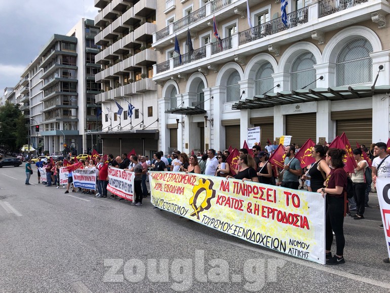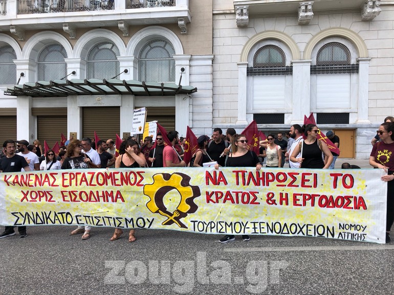 Διαμαρτυρία στο Σύνταγμα πραγματοποίησαν ξενοδοχοϋπάλληλοι και εργαζόμενοι στον τουρισμό-επισιτισμό ξενοδοχείων.