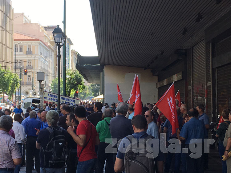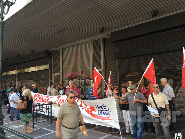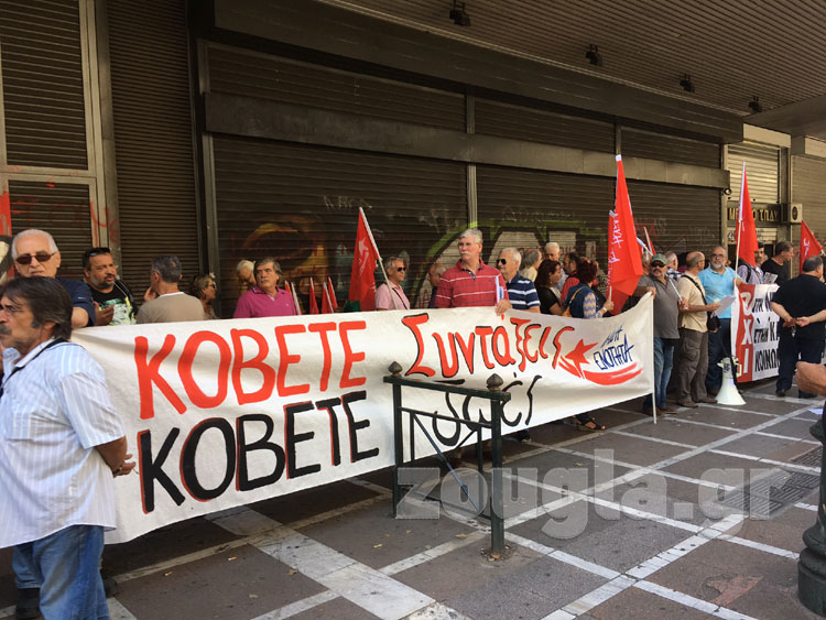 Συγκέντρωση έξω από το Υπουργείο Εργασίας πραγματοποίησε στις 12.00 το μεσημέρι της Τρίτης η Λαϊκή Ενότητα, διαμαρτυρόμενη για τη νέα μείωση στις επικουρικές συντάξεις.