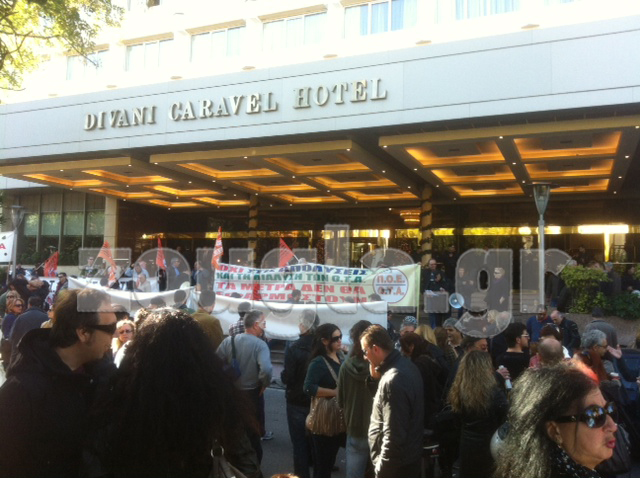 Συγκέντρωση διαμαρτυρίας έξω από το ξενοδοχείο «Divani Caravel», όπου διεξήχθη το έκτακτο συνέδριο της Κεντρικής Ένωσης Δήμων Ελλάδας (ΚΕΔΕ), πραγματοποίησαν σήμερα το πρωί εργαζόμενοι της ΠΟΕ – ΟΤΑ, οι οποίοι αντιδρούν στο μέτρο της διαθεσιμότητας.
