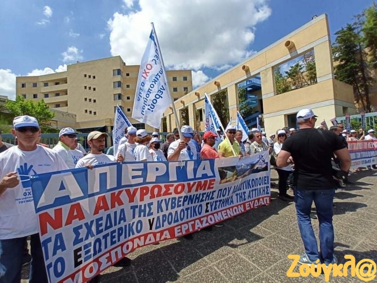 Κάλεσμα μαζικής συμμετοχής στην απεργία και στη συγκέντρωση απευθύνει η ΕΣΚ ΕΥΔΑΠ, «για να αποτρέψουμε τον σχεδιασμό του ξεπουλήματος των υποδομών, που κλιμακώνει τις εξελίξεις στην πλήρη παράδοση του νερού στα μεγάλα επιχειρηματικά συμφέροντα».