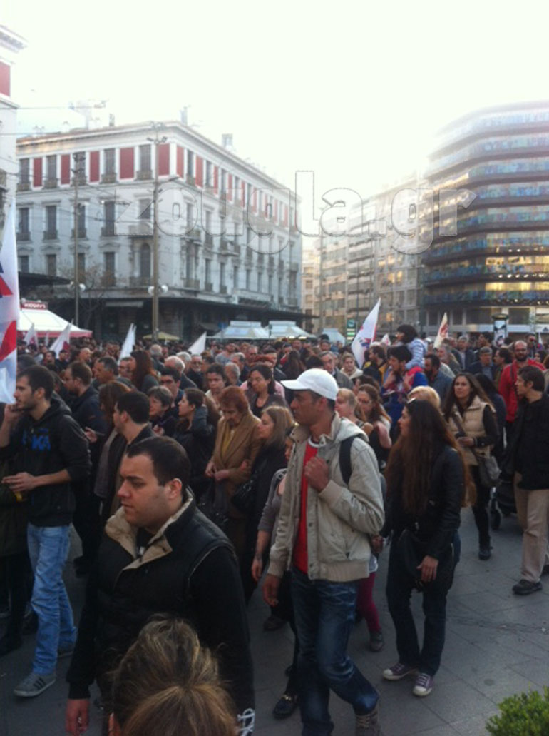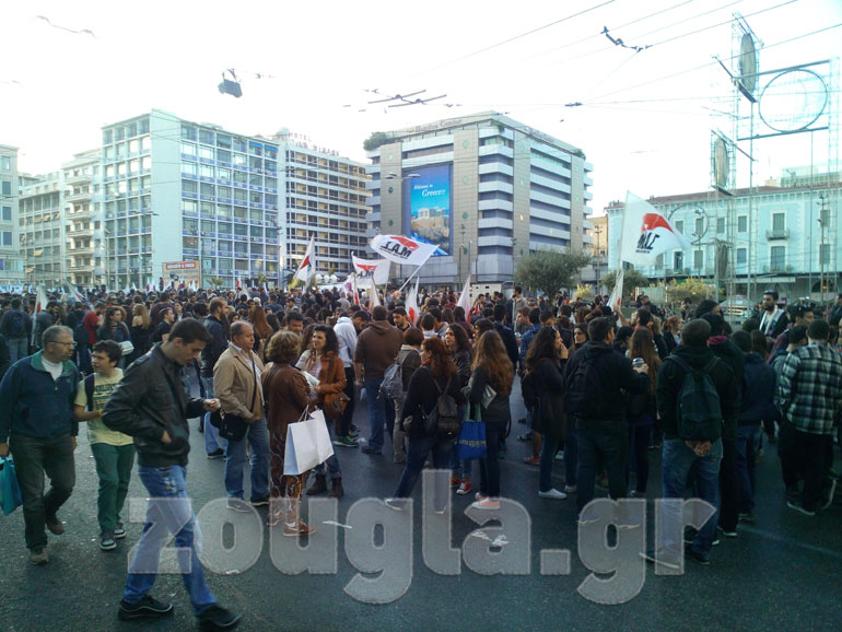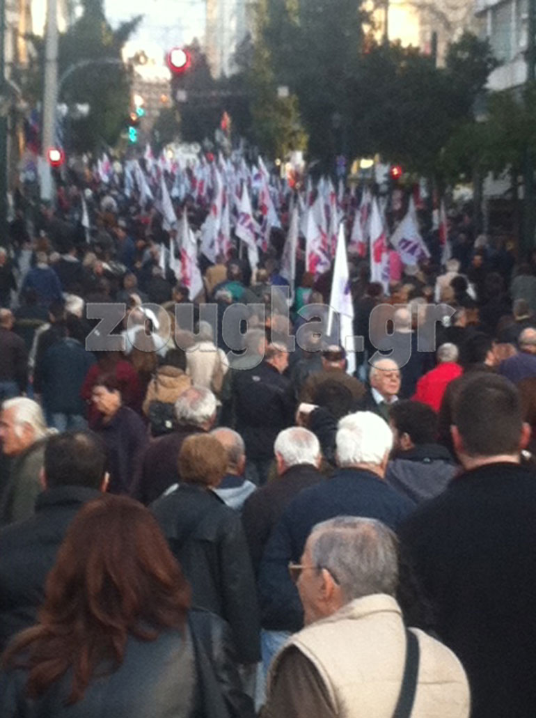 Συλλαλητήριο διαμαρτυρίας κατά της δέσμευσης των ταμειακών διαθεσίμων των φορέων κοινωνικής ασφάλισης, των Οργανισμών Τοπικής Αυτοδιοίκησης και άλλων φορέων πραγματοποιεί αυτή την ώρα στην πλατεία Ομονοίας το ΠΑΜΕ.