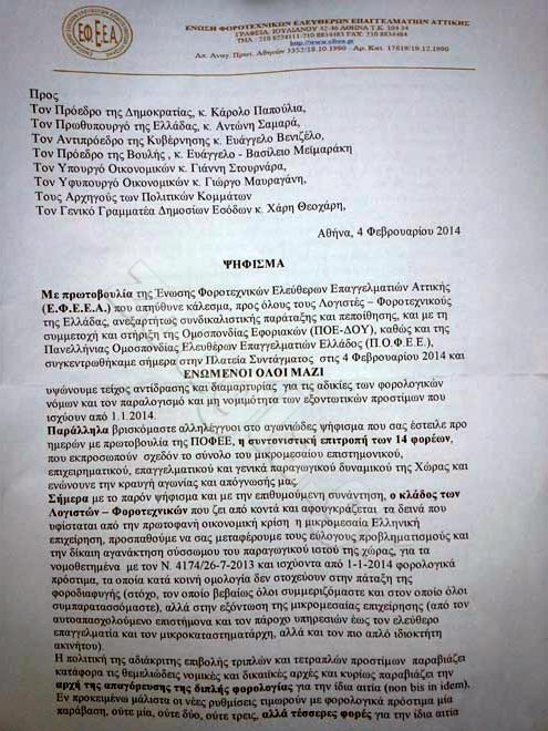«Οι εφοριακοί που καλούνται να υλοποιήσουν τους φορολογικούς νόμους, διαπιστώνουν καθημερινά την φορολογική αδικία, ανισότητα και φοροκαταιγίδα στις πλάτες ενός λαού που υποφέρει δοκιμάζεται και αγωνιά».