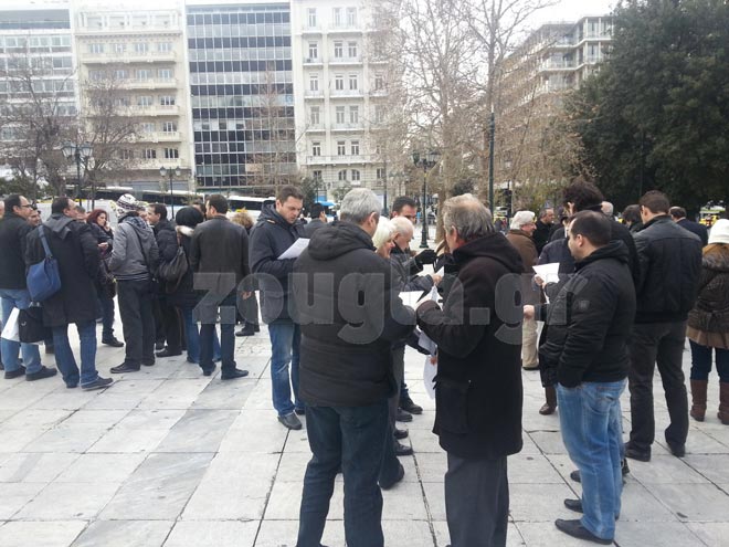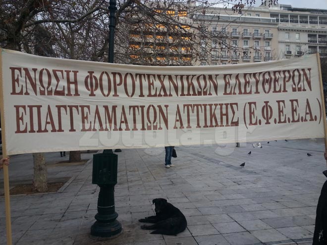 Συγκέντρωση διαμαρτυρίας είναι σε εξέλιξη από τις 11.00 το πρωί στο Σύνταγμα από την Ένωση Φοροτεχνικών Ελεύθερων Επαγγελματιών Αττικής ενάντια στη φορολογική πολιτική της κυβέρνησης για τα υπερβολικά πρόστιμα που ισχύουν από τις αρχές του χρόνου.