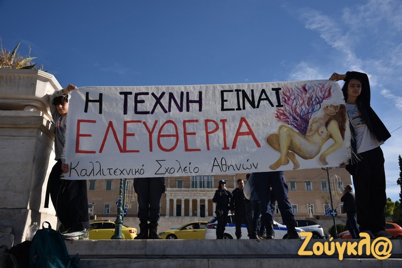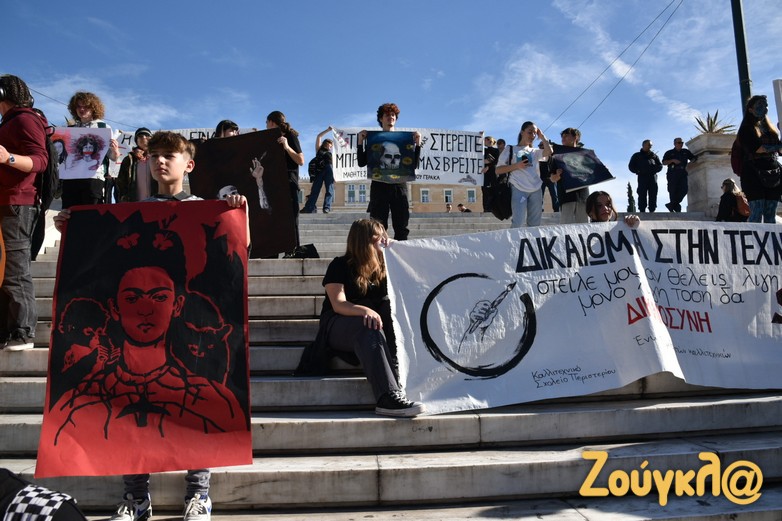 Διαμαρτυρία πραγματοποιούν αυτήν την ώρα τα Καλλιτεχνικά Σχολεία της Αττικής στο Σύνταγμα. Μαθητές και φορείς των σχολείων συγκεντρώθηκαν στην πλατεία Συντάγματος, προκειμένου να διαμαρτυρηθούν για τις ελλείψεις και να διεκδικήσουν τα αιτήματά τους.
