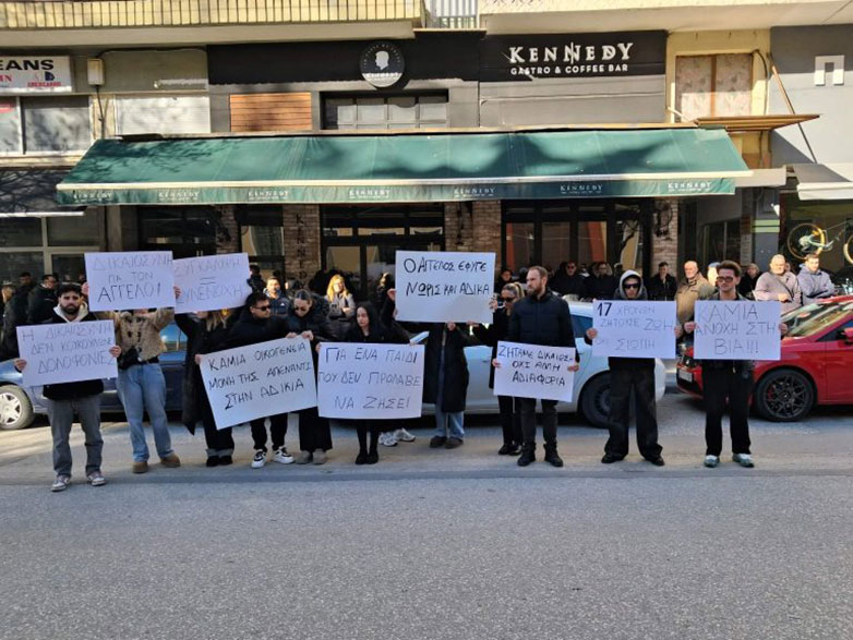 Έξω από τα δικαστήρια στις Σέρρες, είχαν συγκεντρωθεί πολλοί φίλοι του εκλιπόντος, οι οποίοι μαζί με την αδερφή του 17χρονου, σήκωσαν πανό και ταμπέλες στις οποίες με τα γραφόμενά τους ζητούσαν δικαίωση για τον αδικοχαμένο Άγγελο.