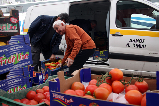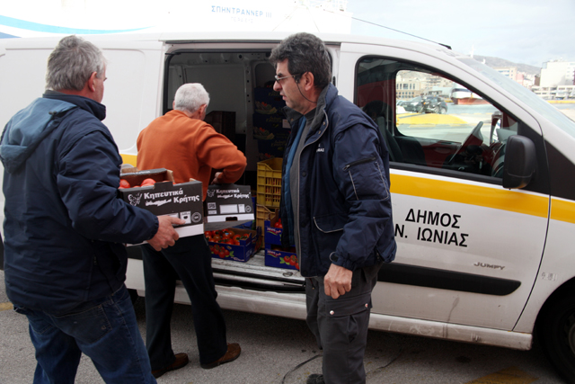 Είκοσι τόνους δωρεάν κηπευτικά μοίρασαν σήμερα στα Κοινωνικά Παντοπωλεία της Αττικής οι αγρότες της Κρήτης. Τα προϊόντα έφθασαν το πρωί στον Πειραιά με πλοίο από την Ιεράπετρα και από τις 08.00 ξεκίνησε η διανομή σε εκπροσώπους των Κοινωνικών Παντοπωλείων που λειτουργούν σε διάφορους δήμους της Αττικής.