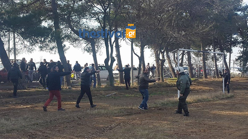 Οι κάτοικοι έριξαν τμήμα της περίφραξης του στρατοπέδου και εισέβαλαν σε αυτό. Άμεσα διμοιρίες των ΜΑΤ παρατάχθηκαν μπροστά τους ώστε να τους αποτρέψουν να φτάσουν στον χώρο των εργασιών. Υπό την πίεση των διαμαρτυριών, τα συνεργεία του Στρατού διέκοψαν τις εργασίες τους. Τα εξωτερικά συνεργεία έχουν αποχωρήσει από το σημείο, ενώ τα οχήματα του στρατού έχουν παραταχθεί κοντά στην είσοδο του στρατοπέδου, προκειμένου να είναι ορατά στους διαμαρτυρόμενους.