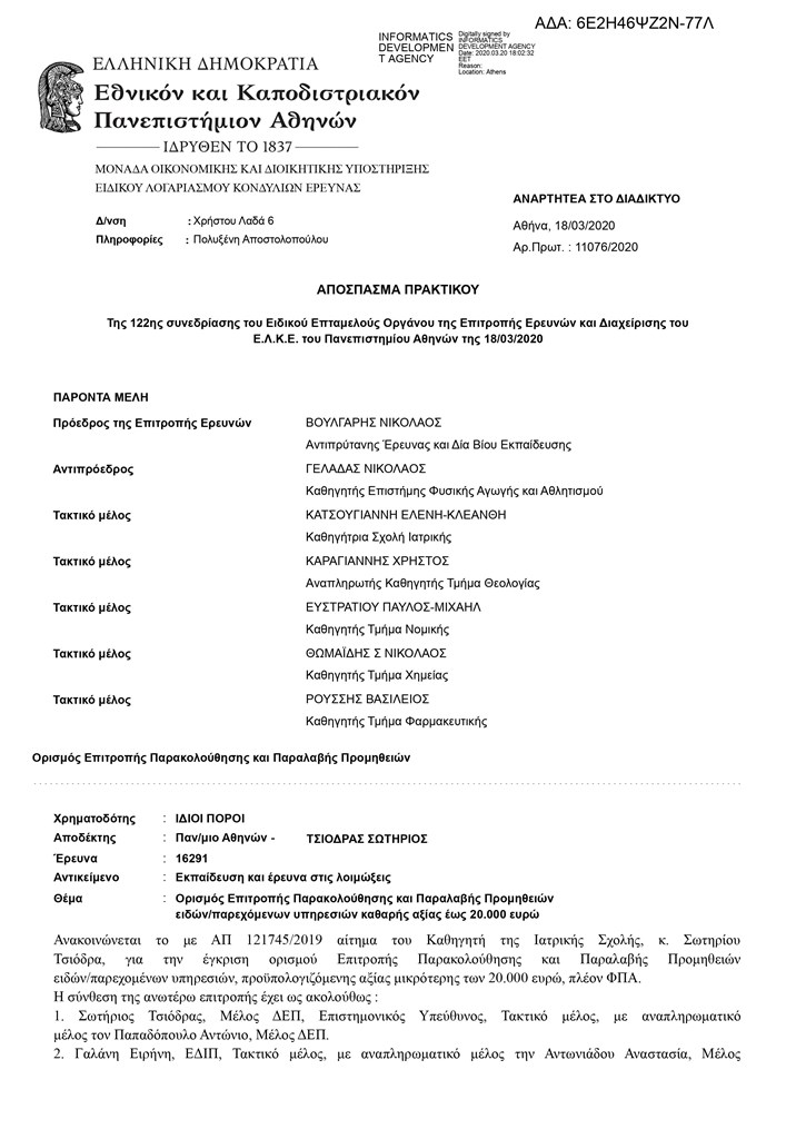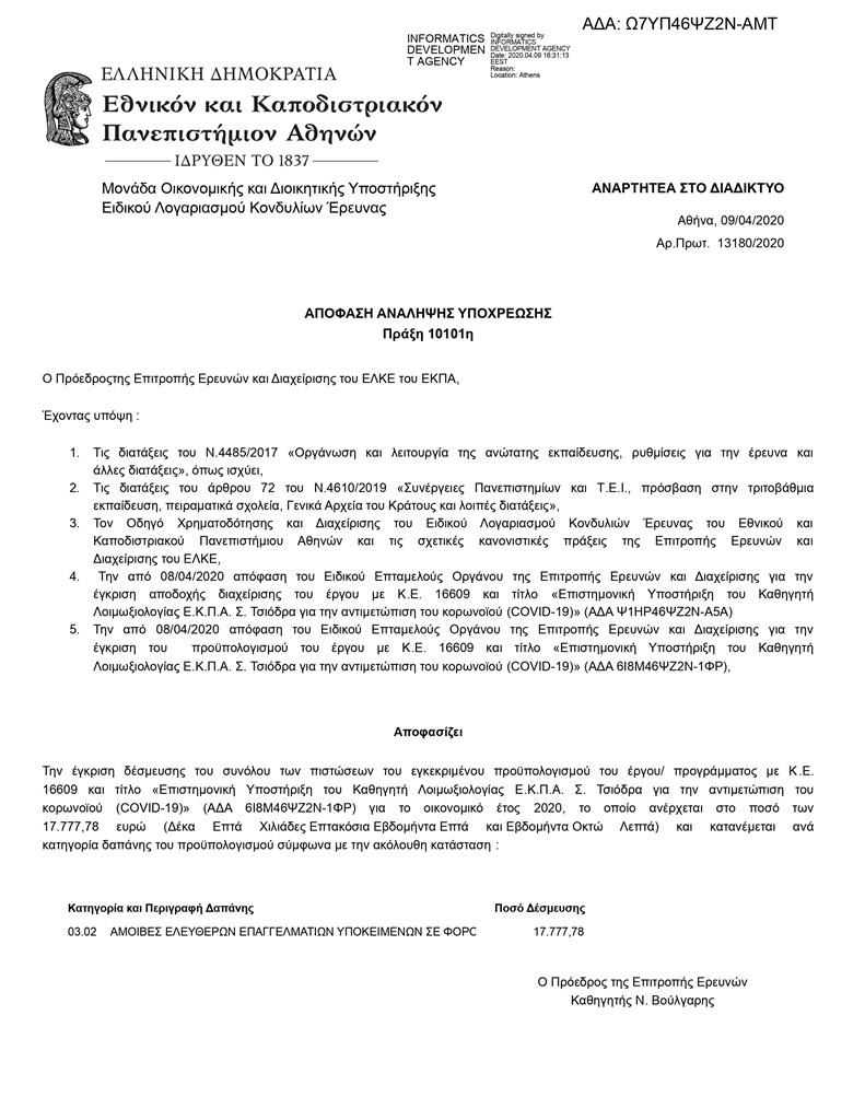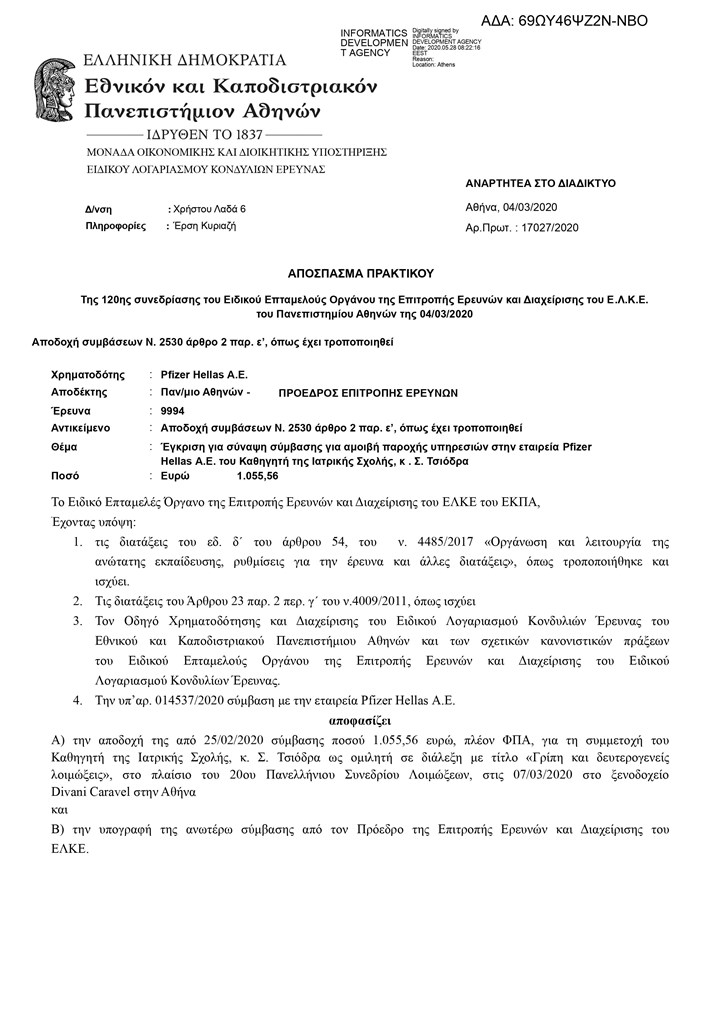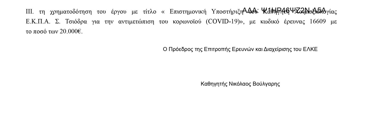 Μετά από μία σύντομη έρευνα στη Διαύγεια και με κάθε επιφύλαξη για πρωθύστερες ή άλλες αμοιβές για επιστημονικά προγράμματα, τα μέλη της επιτροπής του Υπουργείου Υγείας καθηγητές κ. Τσιόδρας και κ. Μαγιορκίνης έχουν λάβει ή διαχειρίζονται από το Δημόσιο ή από εταιρείες σπόνσορες τα κάτωθι ποσά.