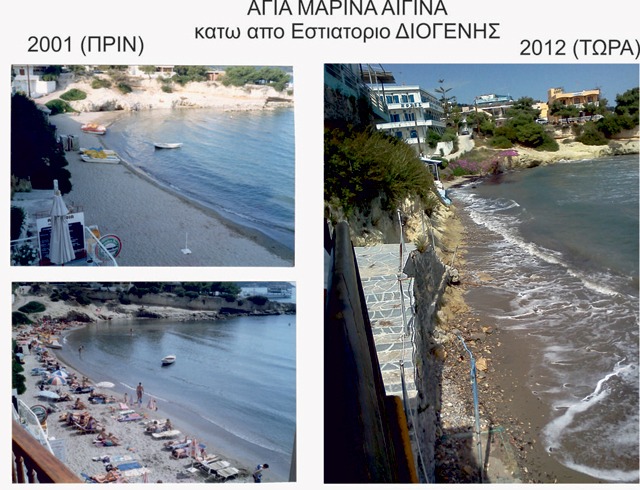 Αντιμέτωποι με την ίδια τη φύση βρίσκονται οι κάτοικοι της Αγίας Μαρίνας Αίγινας, που καθημερινά γίνονται θεατές ενός καταστρεπτικού φυσικού φαινομένου τόσο για τους ίδιους όσο και για τις περιουσίες τους, καθώς η διάβρωση του εδάφους είναι ο κυριότερος παράγοντας της εξαφάνισης της παραλίας.