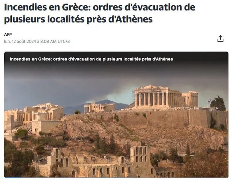«Καπνός πάνω από την Αθήνα, εντολή εκκένωσης πολλών τοποθεσιών: Η Ελλάδα αγωνίζεται ενάντια στις φλόγες», γράφει η Le Figaro.