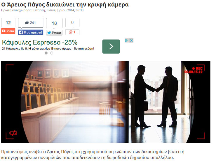 Την ίδια στιγμή, συνεχίζεται στην Ελλάδα η απαγόρευση της χρήσης κρυφής κάμερας, ενός μέσου που είχε βοηθήσει κατά το παρελθόν να έρθουν στη δημοσιότητα πολλές περιπτώσεις διαφθοράς στο Δημόσιο. Με βάση τον τυποκτόνο νόμο που βρίσκεται σε ισχύ, σ’ ένα αντίστοιχο σκάνδαλο χρηματισμού βουλευτών, απλά θα κατακρίναμε την παράνομη λήψη των αποδεικτικών στοιχείων…