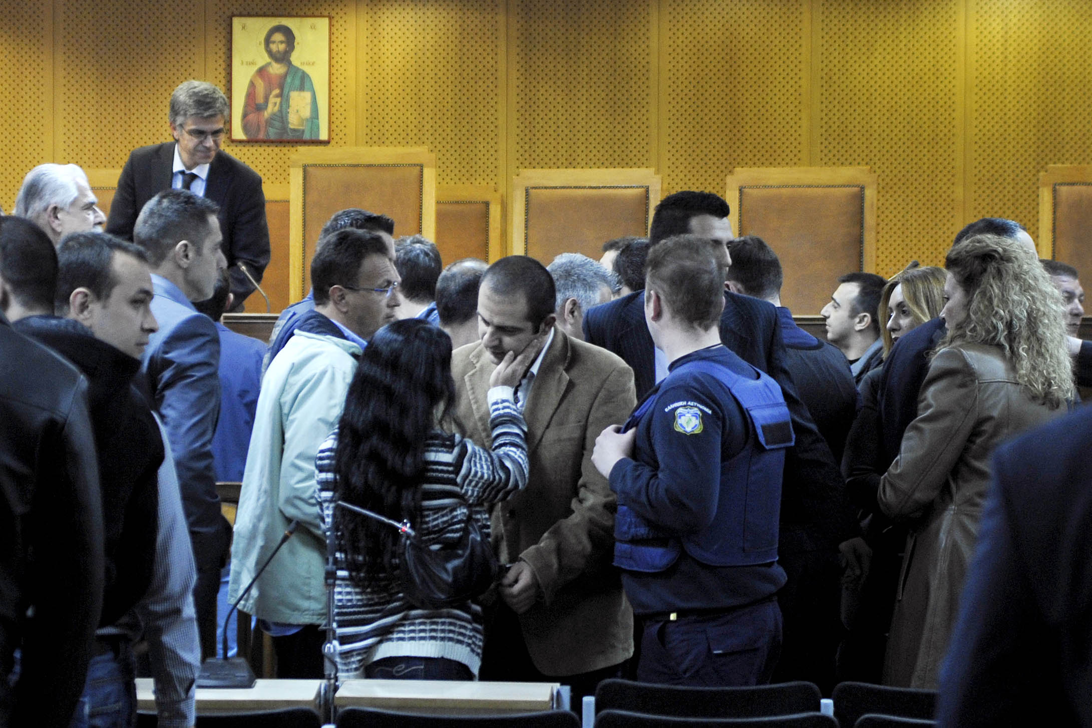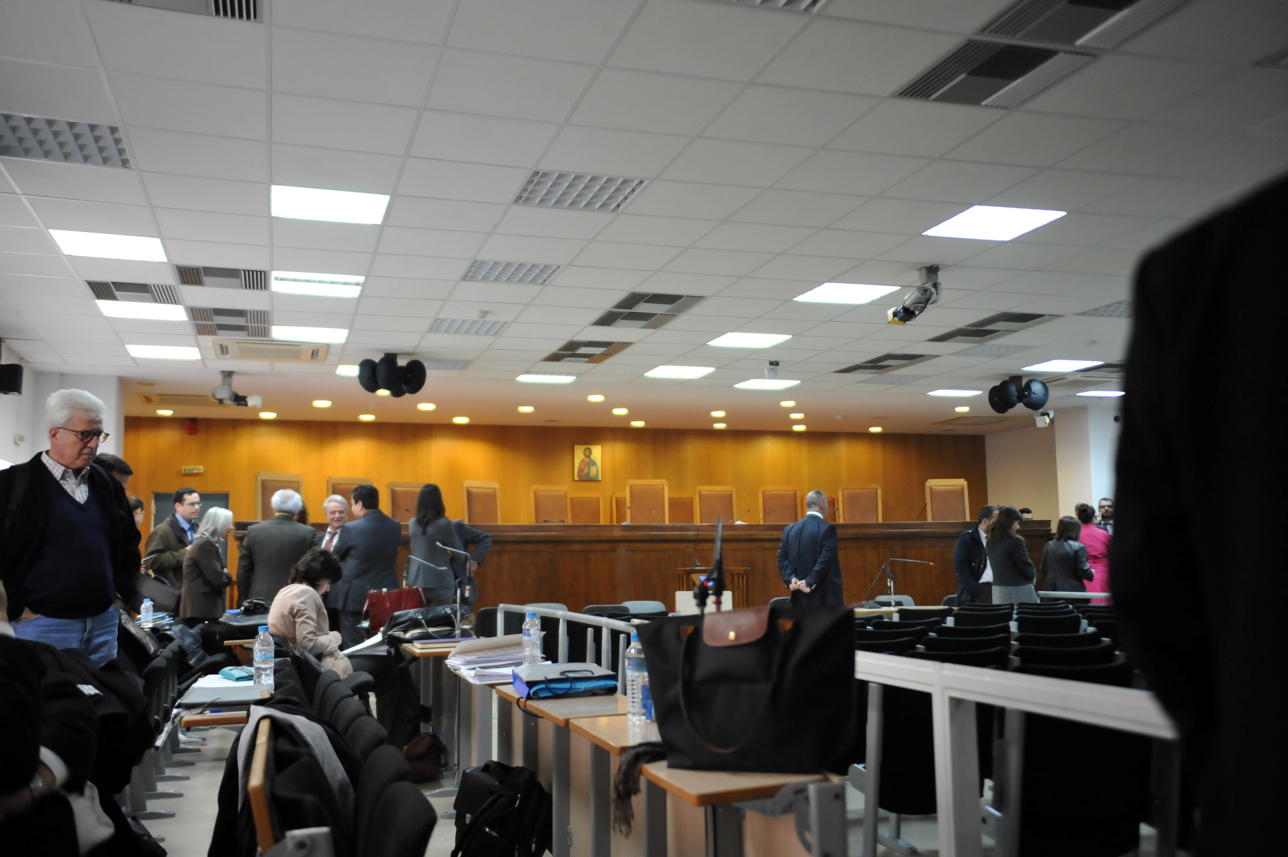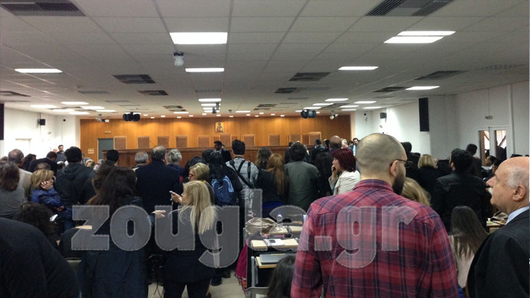 Η αίθουσα των φυλακών Κορυδαλλού ήταν ασφυκτικά γεμάτη καθιστώντας ιδιαίτερα δυσχερές τόσο το έργο της έδρας όσο και των δημοσιογράφων.