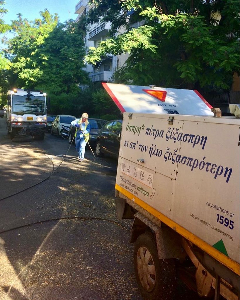 Σήμερα, 25 εργαζόμενοι της Διεύθυνσης Καθαριότητας, χρησιμοποιώντας πέντε μεγάλα σάρωθρα, έξι μεγάλα πλυστικά μηχανήματα τελευταίας τεχνολογίας , δύο υδροφόρες χωρητικότητας 10 τόνων και πέντε μικρά πλυστικά βρέθηκαν στην περιοχή των Πατησίων στην 5η Δημοτική Κοινότητα.