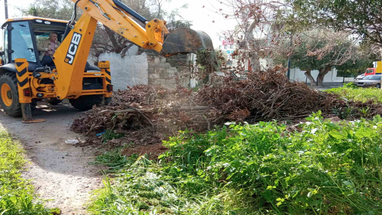 Στο πλαίσιο αυτό, οι υπάλληλοι της Υπηρεσίας Πρασίνου πραγματοποίησαν τις προηγούμενες ημέρες εκτενή καθαρισμό από τα ξερά κλαδιά και κηπαία απόβλητα που βρίσκονταν στην αρχή της οδού Ζαϊμη ενώ κλαδεύτηκαν δέντρα και αποψιλώθηκαν χόρτα περιμετρικά των πεζοδρομίων της οδού.