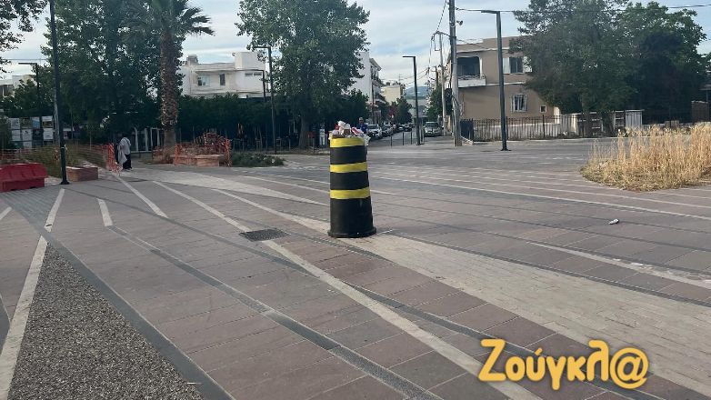 Το πλέον εξοργιστικό όμως είναι ότι ο βιδωμένος κάδος – βαρέλι τοποθετήθηκε πάνω στον ειδικά διαμορφωμένο διάδρομο όδευσης που υφίσταται για τον περίπατο των τυφλών συνανθρώπων μας, όπως φαινεται καθαρά από τις εικόνες που ακολουθούν.