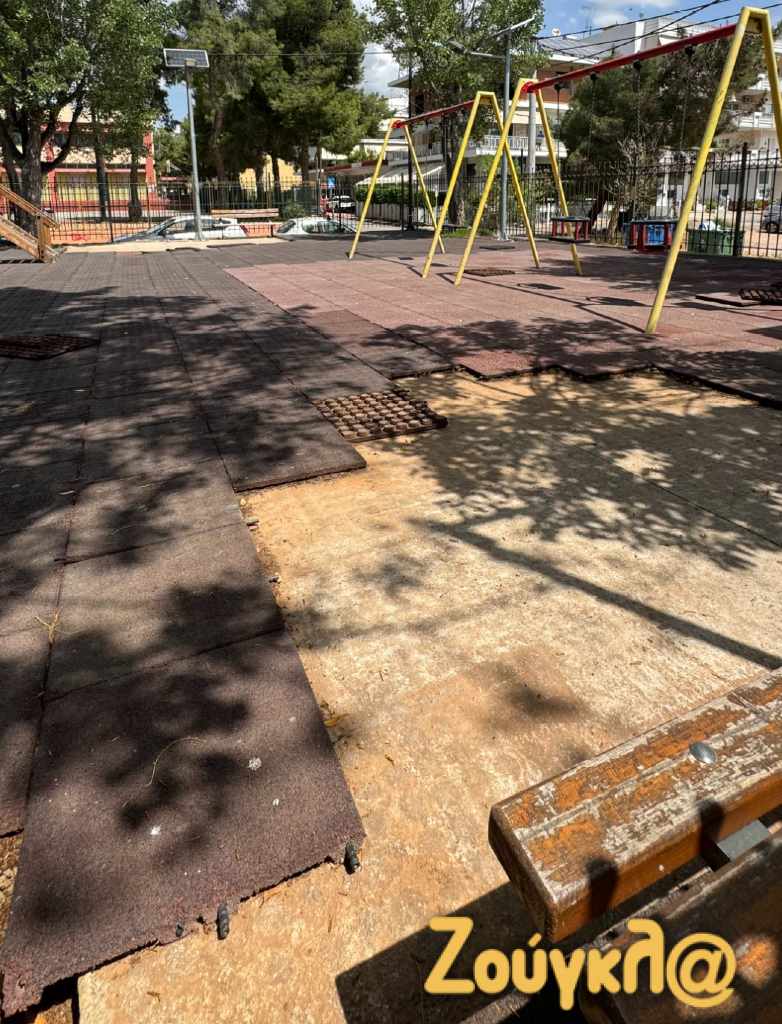Η ηλεκτρονική εφημερίδα ZOUGLA.GR μετά από επικοινωνία με γονείς που διαμένουν στην περιοχή οι οποίοι κατήγγειλαν ότι οι συνεχείς βανδαλισμοί του χώρου από αγνώστους αλλά και η αδιαφορία της διοίκησης του δήμου και των αρμοδίων να διαφυλάξουν τον χώρο από τις καταστροφές καθιστά την συγκεκριμένη παιδική χαρά επικίνδυνη για τα παιδιά μιας και από τις πρόσφατες καταστροφές έχουν αποκολληθεί τα πλακάκια του ειδικού τάπητα σε πολλά σημεία του κοινόχρηστου χώρου με αποτέλεσμα να αποτελεί άμεσο κίνδυνο για την σωματική ακεραιότητα των παιδιών που έρχονται για να παίξουν.