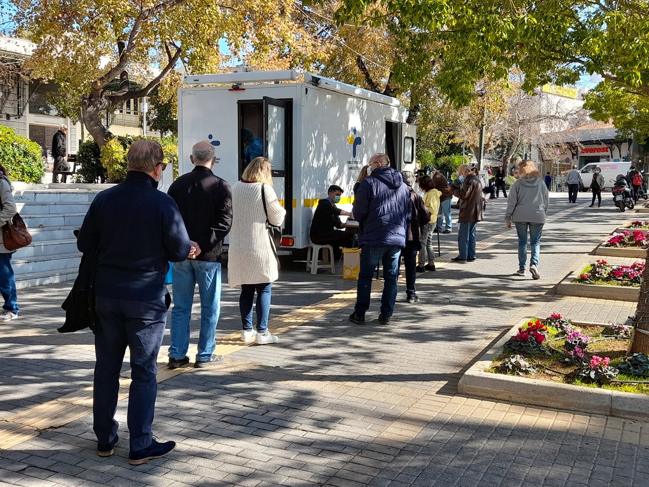 Το κινητό συνεργείο του ΕΟΔΥ διενέργησε τα τεστ στην Κεντρική Πλατεία του Χαλανδρίου, από τις 10:00 έως τις 15:00.