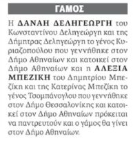 Στην αναγγελία δεν αναφέρεται η ημερομηνία του γάμου, όμως σημειώνεται ότι οι δύο γυναίκες θα παντρευτούν στον Δήμο Αθηναίων.