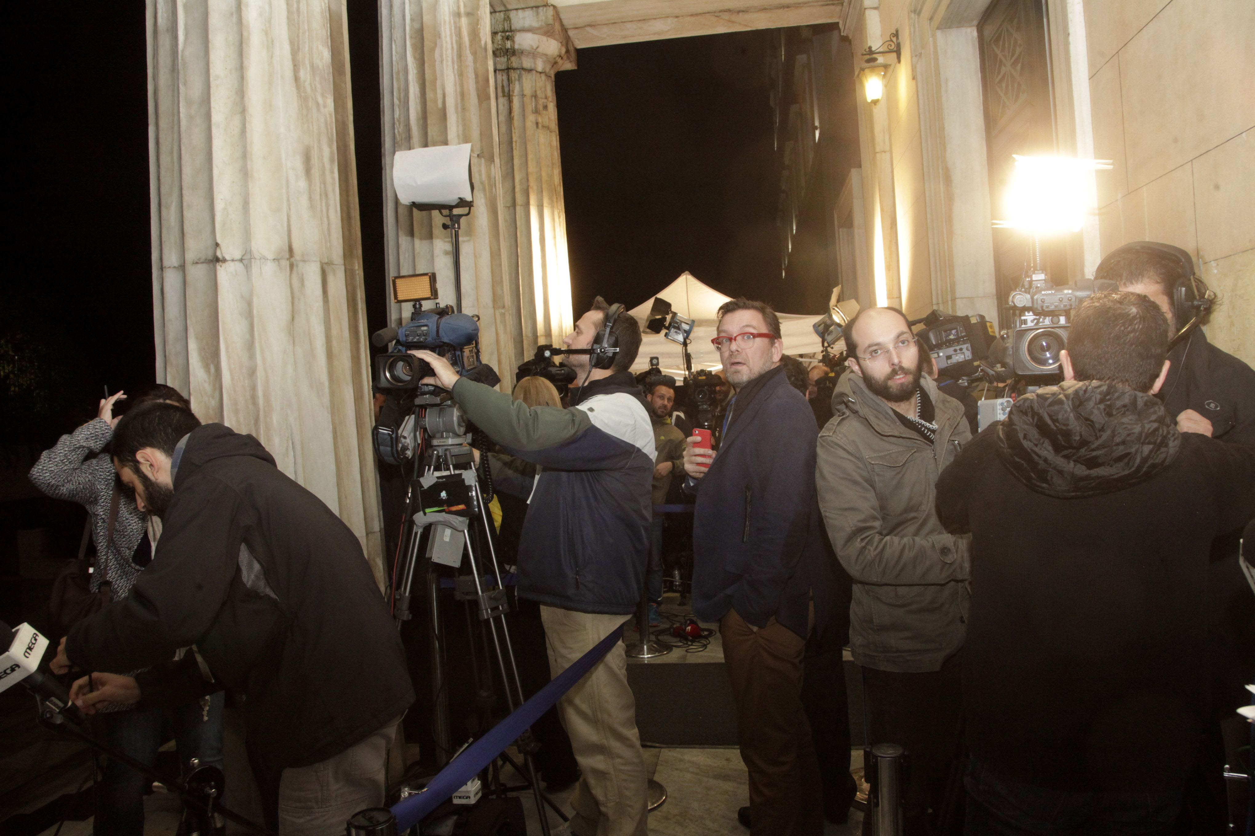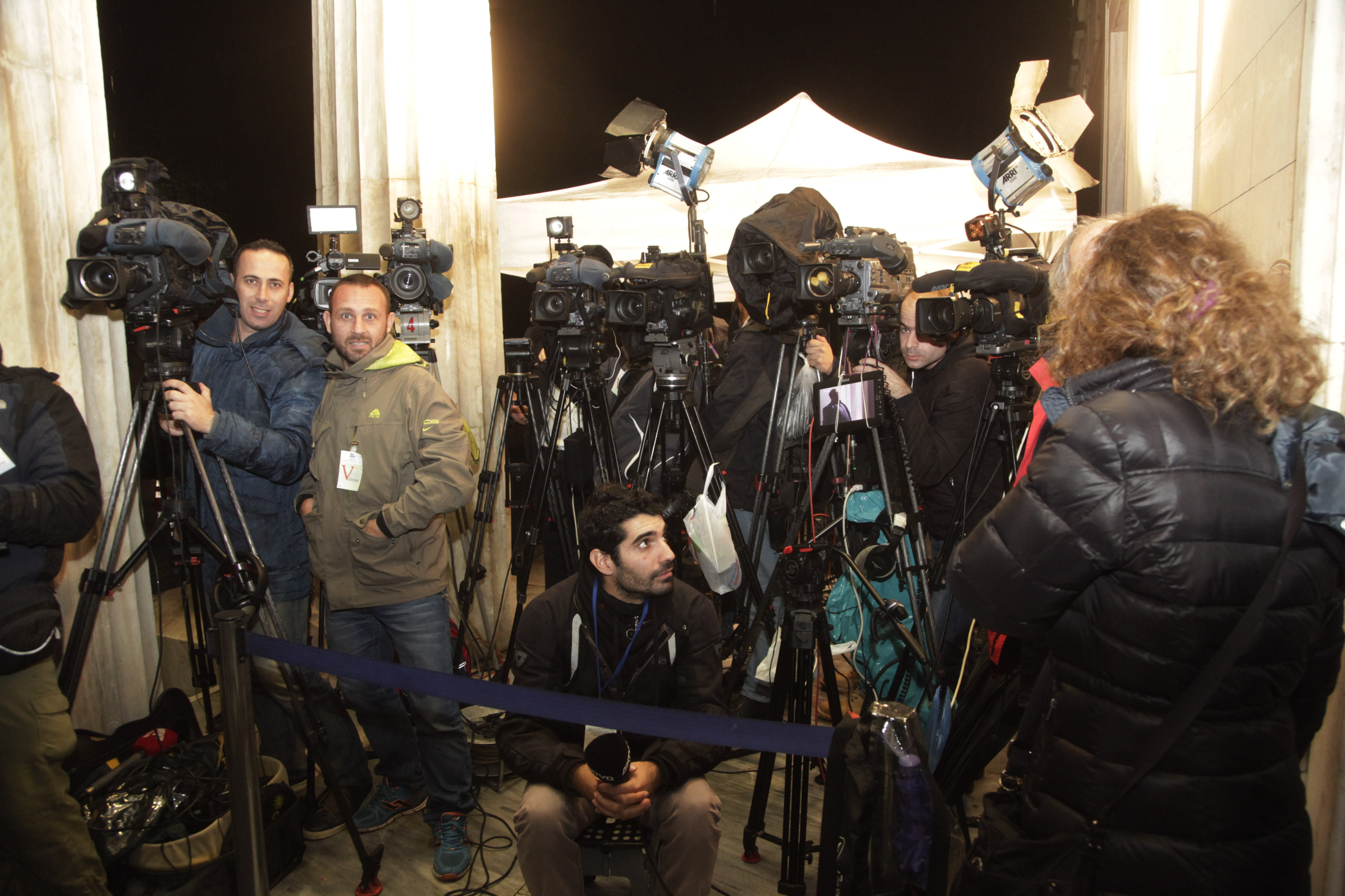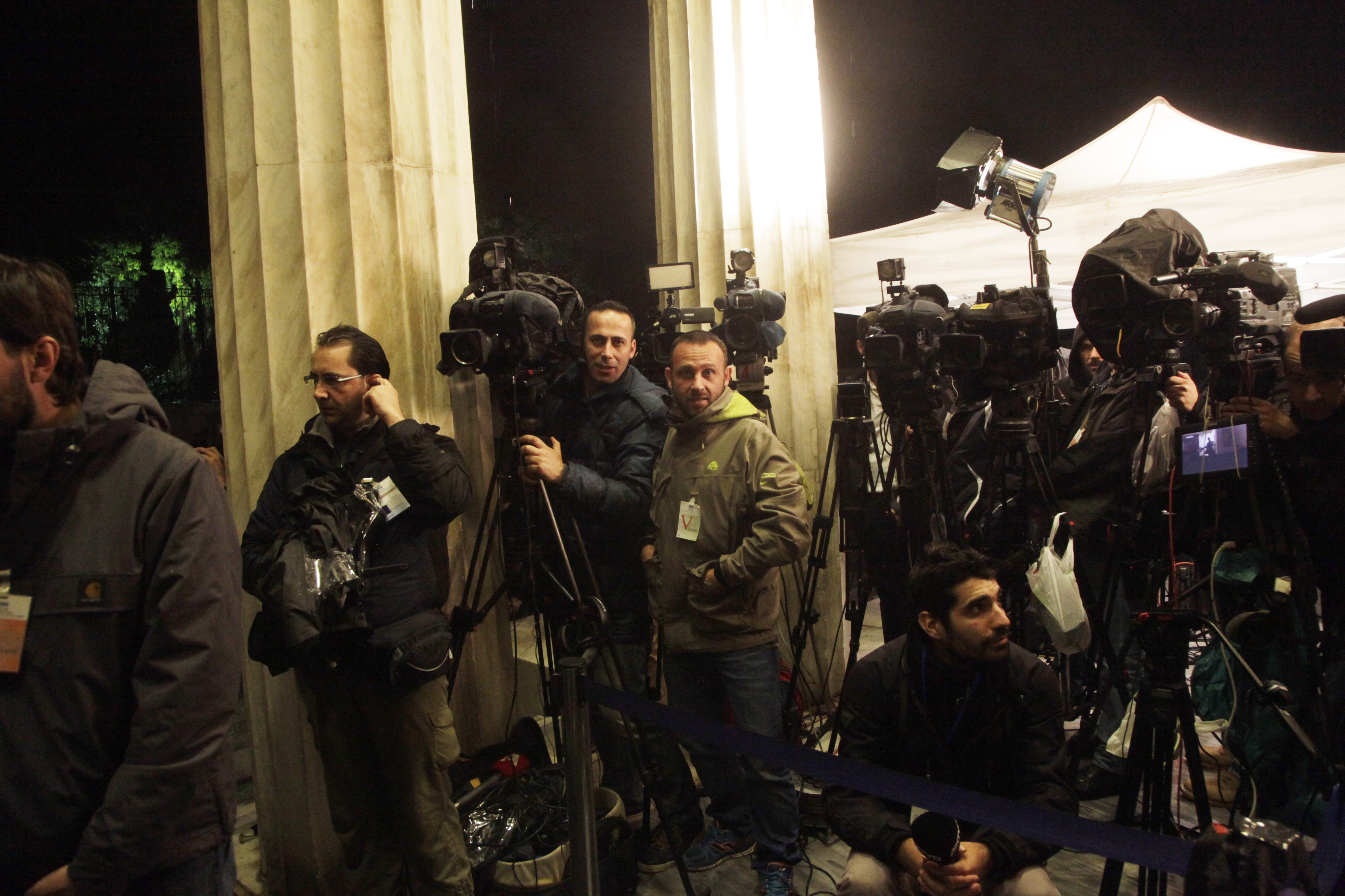 Το αδιαχώρητο από δημοσιογράφους διεθνών Μέσων ενημέρωσης επικρατεί στο περιστύλιο της Βουλής, ενδεικτικό του παγκόσμιου ενδιαφέροντος που συγκεντρώνει η πρώτη ψηφοφορία για την εκλογή του Προέδρου της Δημοκρατίας.