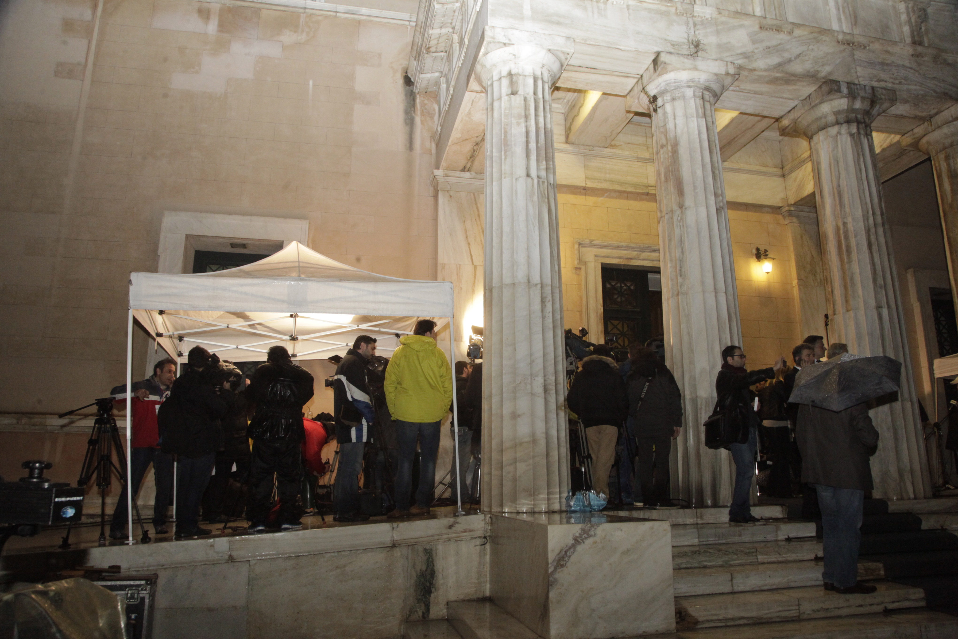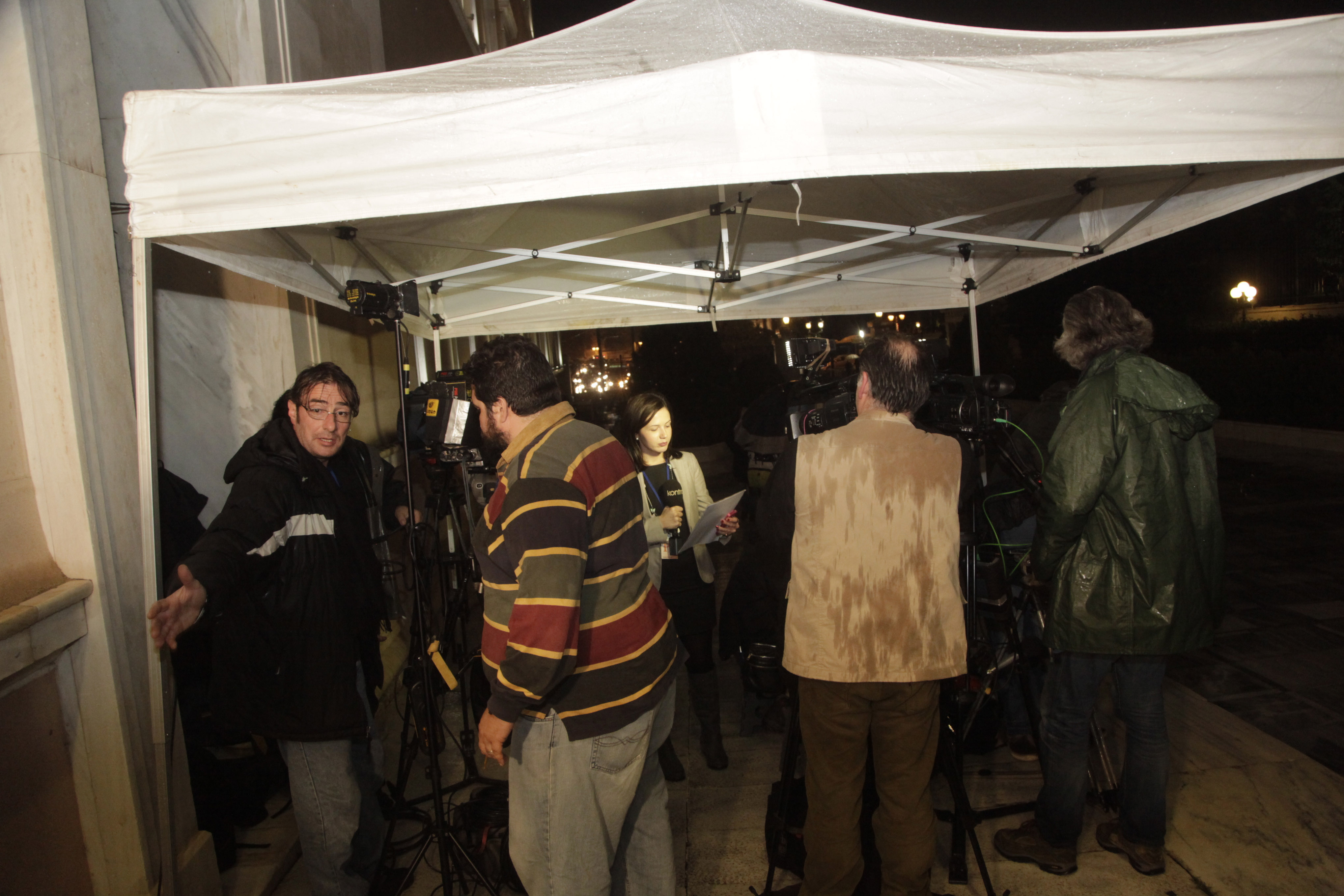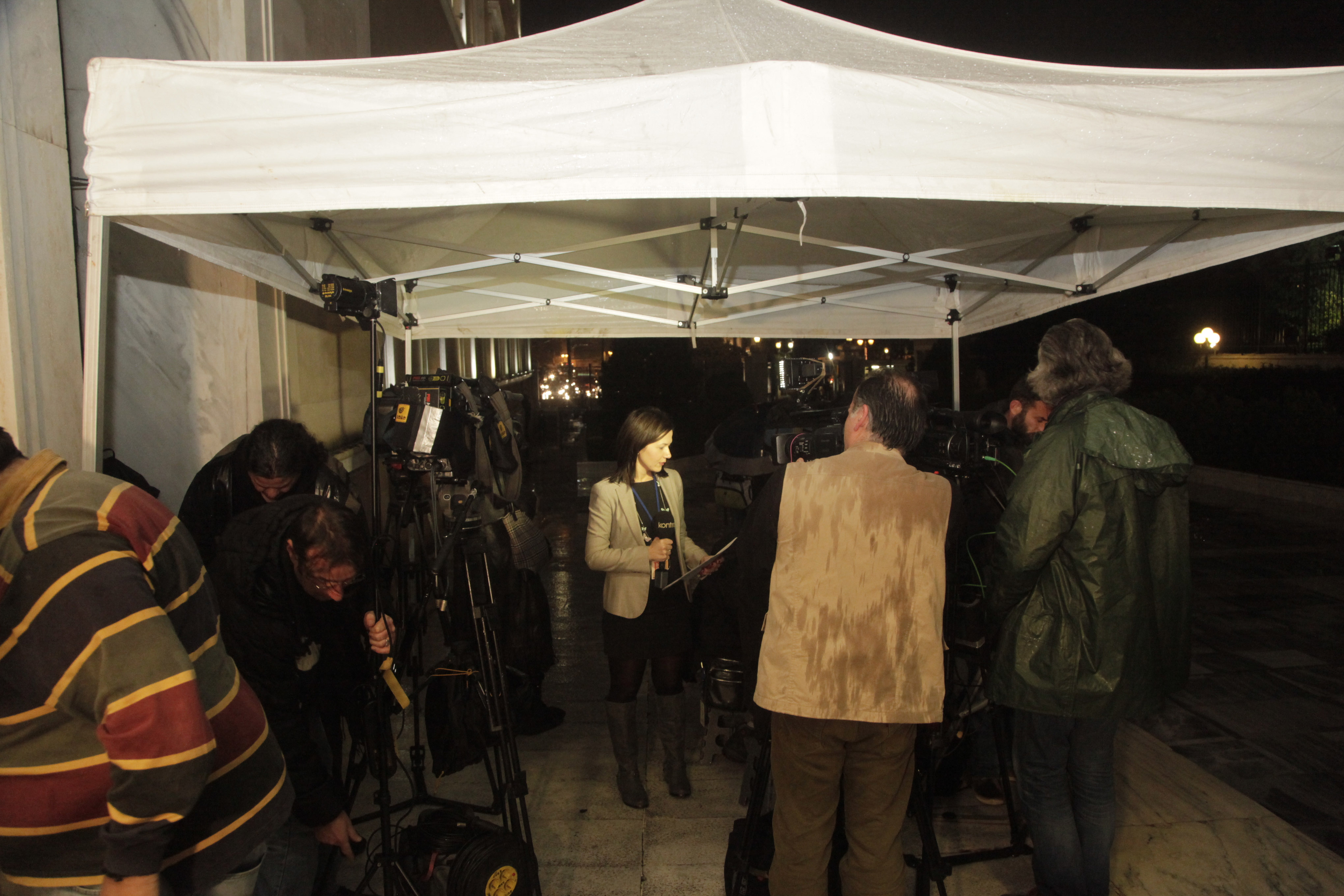 Σημειώνεται ότι στον προθάλαμο του κτιρίου της Βουλής έχει στηθεί τέντα, προκειμένου να προστατευτούν οι εκπρόσωποι των Μέσων.