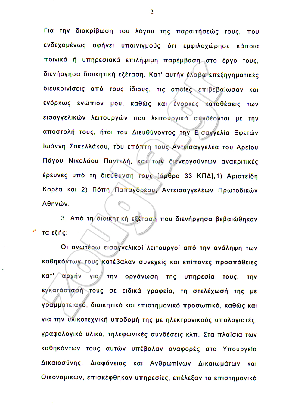 Διαβάστε όλο το πόρισμα για τους δύο οικονομικούς εισαγγελείς: