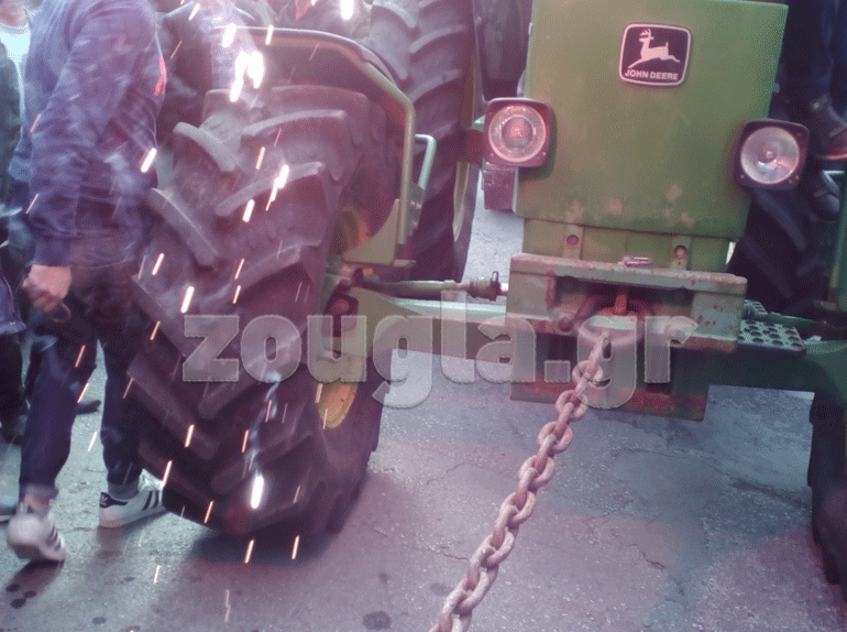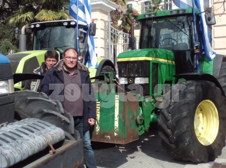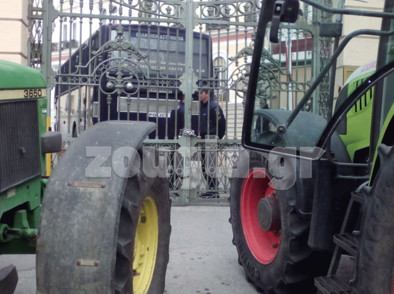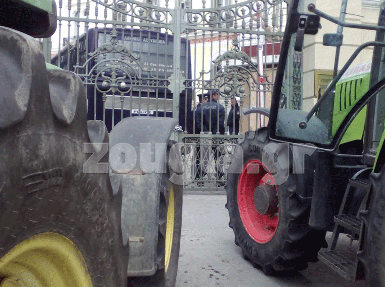 Οι αγρότες προχώρησαν σε μία συμβολική κίνηση δένοντας με αλυσίδα την κεντρική καγκελόπορτα του Υπουργείο με ένα τρακτέρ ανεβάζοντας παράλληλα και την ελληνική σημαία στην κεντρική είσοδο. Την ίδια στιγμή πέταξαν στο δρόμο μπροστά από το Υπουργείο καλαμπόκια και φασόλια φωνάζοντας συνθήματα κατά της Κυβέρνησης. Δηλώνουν αποφασισμένοι να κλιμακώσουν τις κινητοποιήσεις τους. Όπως ξεκαθάρισαν θα παραμείνουν στους δρόμους και αφήνουν ανοιχτό το ενδεχόμενο να ενισχυθούν τα υπάρχουν καθώς και να δημιουργηθούν «νέα».