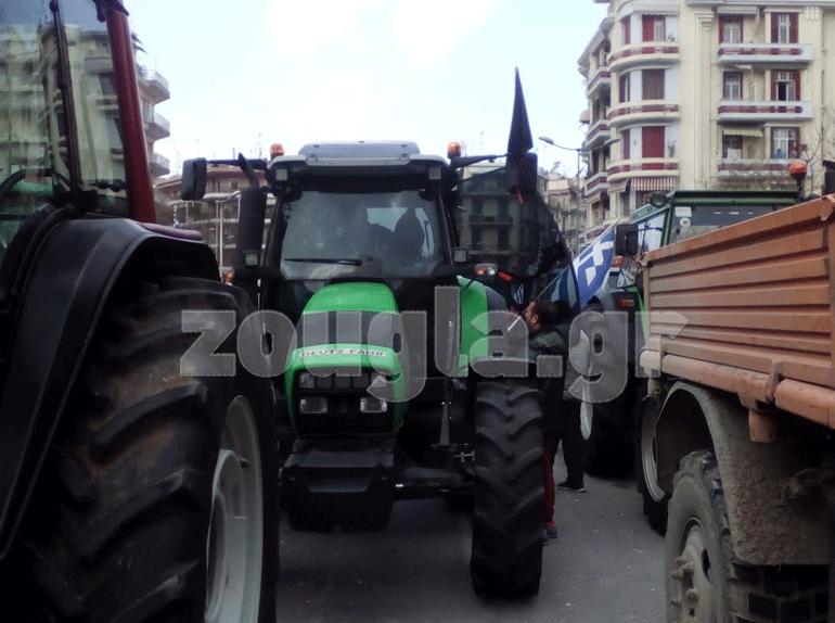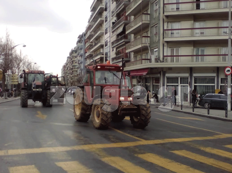 Δεκάδες τρακτέρ με γαλανόλευκες σημαίες, από όλη την Κεντρική Μακεδονία απέκλεισαν τους δρόμους μπροστά και γύρω από το Υπουργείο Μακεδονίας – Θράκης. Οι αγρότες δηλώνουν αμετακίνητοι στις θέσεις τους και ζητούν από τον πρωθυπουργό, Αλέξη Τσίπρα, να πάρει πίσω τα μέτρα που θέλει να εφαρμόσει αναφορικά με το νέο ασφαλιστικό, φορολογικό και τον πρωτογενή τομέα.