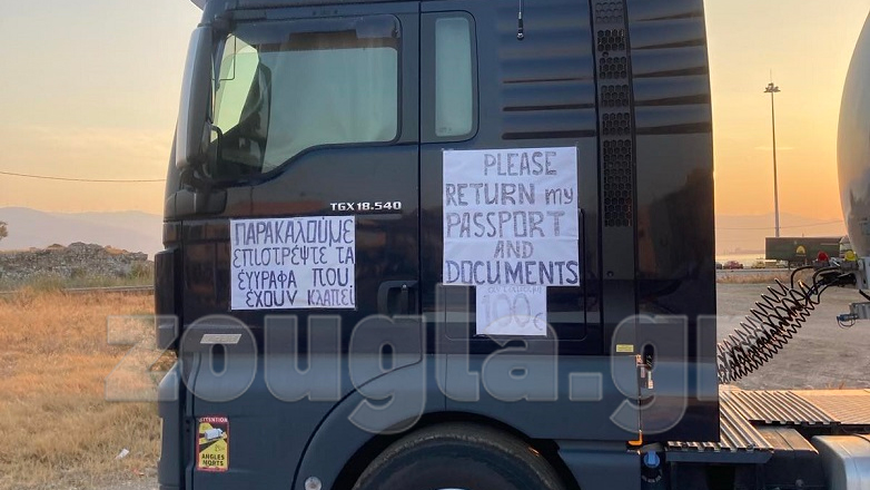 Το βυτίο δεν μπορεί να μετακινηθεί για τέταρτη ημέρα και ο οδηγός εκλιπαρεί τους διαρρήκτες να του επιστρέψουν τα έγγραφα, για να μπορέσει να συνεχίσει το ταξίδι του.