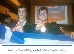 Τα μετάλλια κατέκτησαν ο απόφοιτος μαθητής της Γ Λυκείου Ευστράτιος Τσακαλίδης και ο τελειόφοιτος μαθητής της Β Λυκείου Αλέξανδρος Τερζόπουλος.