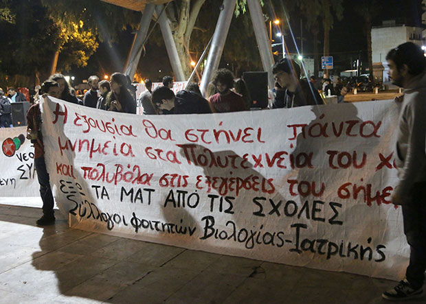 Από τις 18:00 το απόγευμα, η ΕΛΜΕ, ο Σύλλογος Εκπαιδευτικών Πρωτοβάθμιας Εκπαίδευσης Ηρακλείου «Δομήνικος Θεοτοκόπουλος» με τη στήριξη κι άλλων φορέων πραγματοποιεί συγκέντρωση στην πλατεία Ελευθερίας.