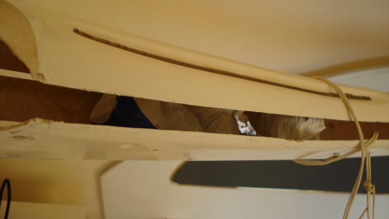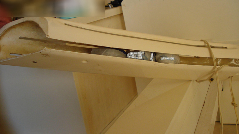 • 144,8 γραμμάρια ηρωίνη σε στερεά μορφή (βράχος), μέσα σε τρεις νάιλον συσκευασίες, επιμελώς κρυμμένες σε αυτοσχέδια κρύπτη στο προσκέφαλο κρεβατιού