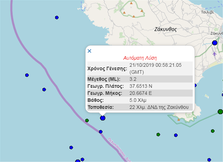 Σεισμική δόνηση επίσης 3,2R σημειώθηκε στις 03.58 σε θαλάσσια περιοχή 22 χιλιόμετρα νοτιοδυτικά της Ζακύνθου.