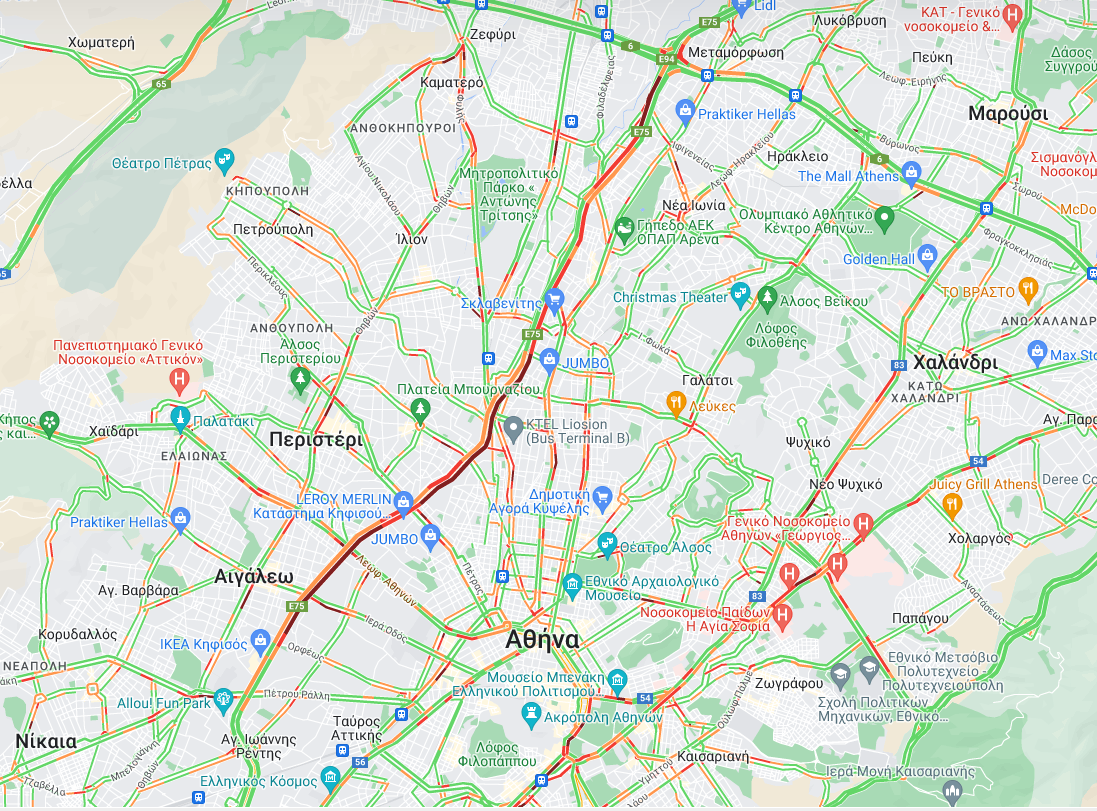 Αυξημένη κυκλοφορία στην λεωφόρο Αθηνών από Χαϊδάρι προς Ασπρόπυργο και στους δρόμους γύρω από το λιμάνι του Πειραιά.