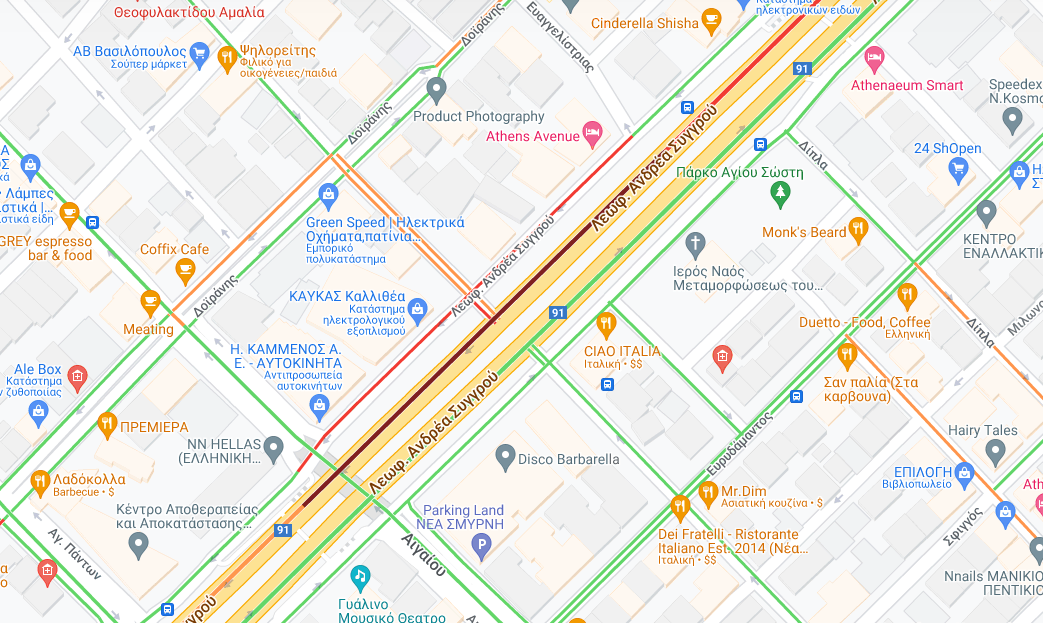 Με δυσκολία διεξαγόταν η κυκλοφορία των οχημάτων στη λεωφόρο Συγγρού το μεσημέρι της Κυριακής, λόγω θραύσης αγωγού της ΕΥΔΑΠ, στο ύψος του Άγιου Σώστη, στην περιοχή της Καλλιθέας στο ρεύμα προς Γλυφάδα.