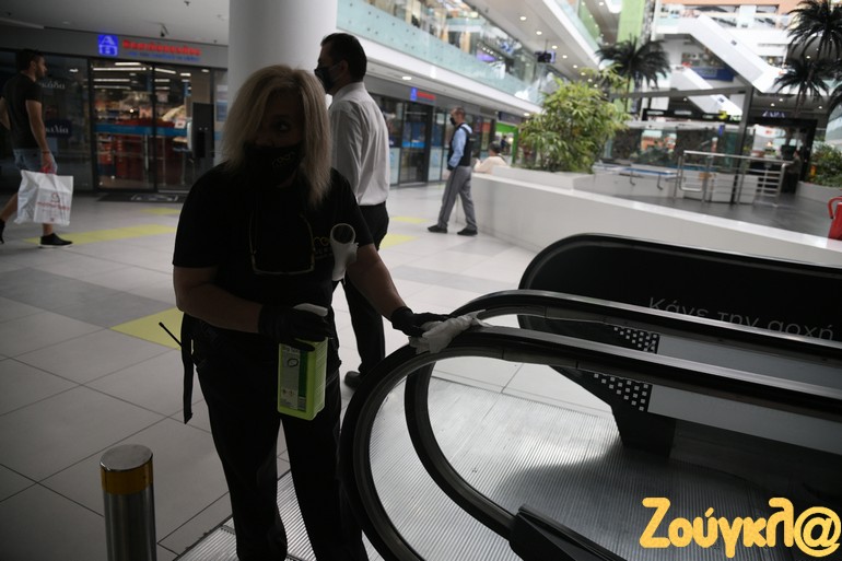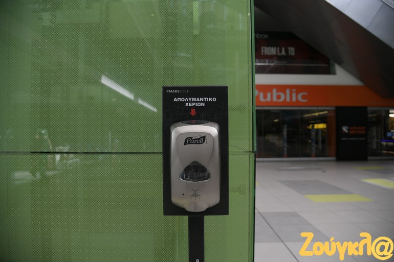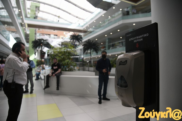 Ο φακός του zougla.gr βρέθηκε στο εμπορικό κέντρο «Metro Mall» και αποτύπωσε την εικόνα των μαγαζιών μέσα στο εμπορικό, ξεκινώντας από τα μέτρα που έλαβαν οι εργαζόμενοι για την ασφάλειά τους μέχρι και τα αντισηπτικά που είναι τοποθετημένα σε διάφορα σημεία για τους καταναλωτές.