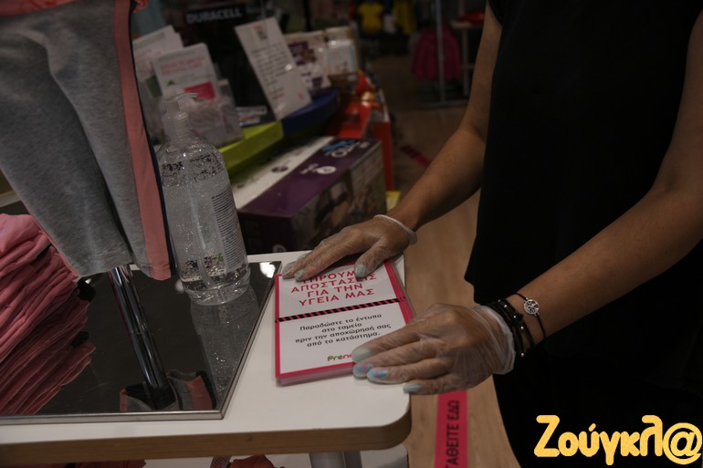 Στην είσοδο των καταστημάτων υπάρχουν γάντια, τα οποία προσφέρονται δωρεάν στους πελάτες, και αντισηπτικά για να καθαρίζουν τα χέρια τους, όπως μπορείτε να δείτε στα παρακάτω βίντεο.